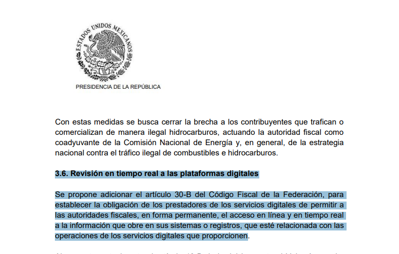 Las reformas incluyen la adición del artículo 30-B al Código Fiscal, que establece la obligación de las plataformas digitales de permitir al SAT el acceso permanente, en línea y en tiempo real, a la información contenida en sus sistemas o registros.