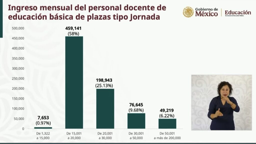 - 58% de los docentes está entre los 15 mil y 20 mil pesos mensuales