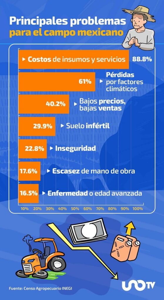 Según el Censo Agropecuario más reciente de Inegi, los principales problemas reportados por unidades productivas son: