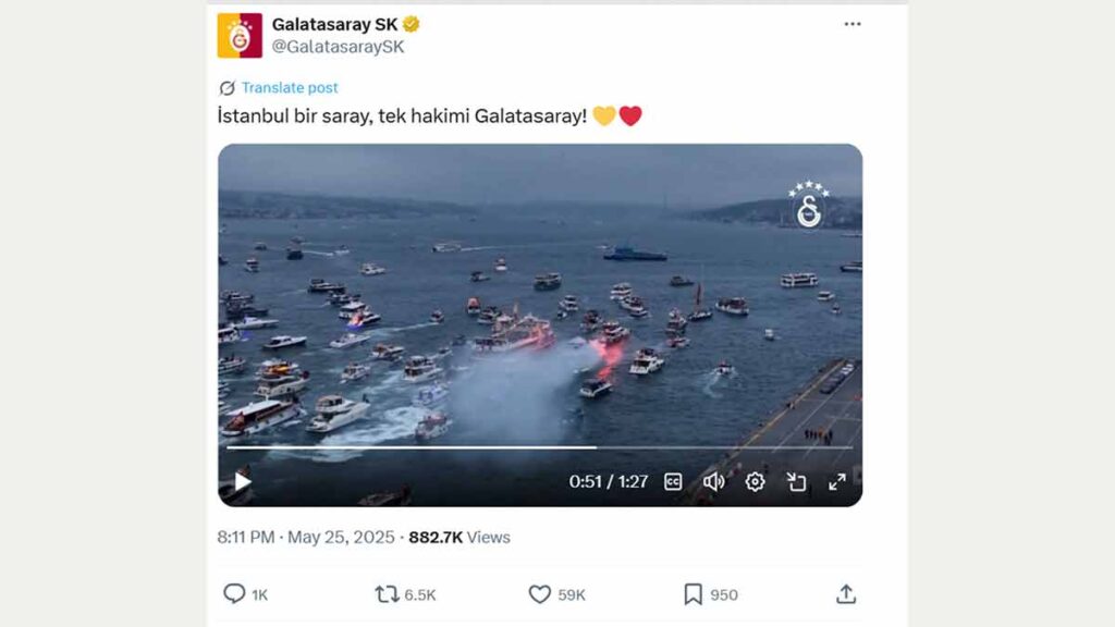 En redes sociales circuló un video con la falsa descripción que mostraba a la Flotilla Global Sumud rumbo a Gaza. En realidad, las imágenes corresponden a un desfile náutico realizado el 25 de mayo en Estambul, cuando aficionados del club Galatasaray celebraron su título número 25 en la liga turca.