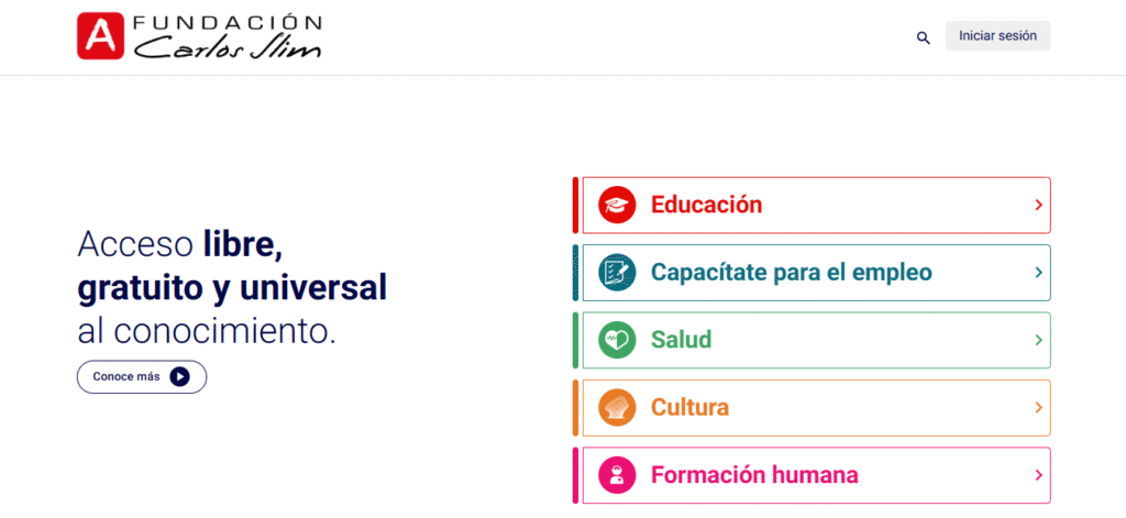 La plataforma integra contenido educativo diverso, que incluye cursos, talleres y diplomados diseñados para contribuir al aprendizaje continuo de personas con distintos perfiles.