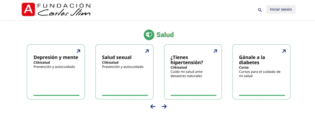 La plataforma también contiene materiales relacionados con la salud, que abarcan temas de prevención, cuidado personal y bienestar.