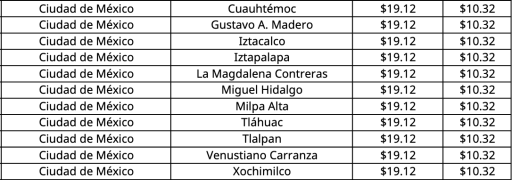 Precio máximo aplicable por kilogramo en la Ciudad de México (CDMX) será de 19.12 pesos.