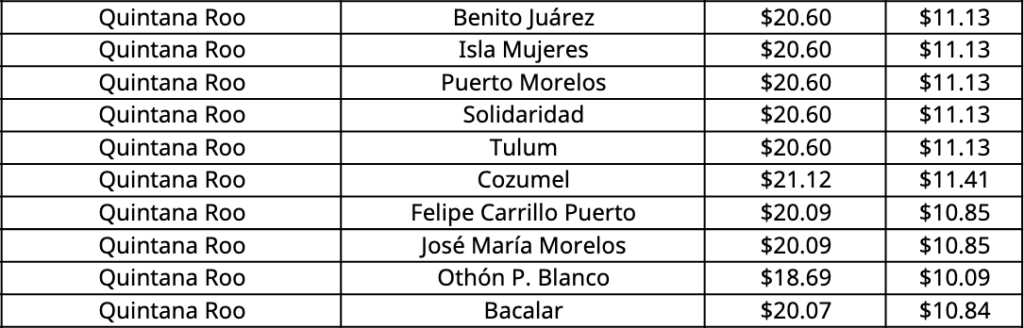 En Chetumal (Othón P. Blanco), capital de Quintana Roo, el precio máximo aplicable por kilogramo aumenta a 18.69 pesos.