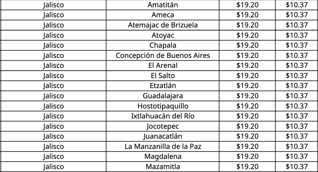 La CNE informó que el costo máximo del combustible será de 19.20 pesos en Guadalajara, la capital de Jalisco.