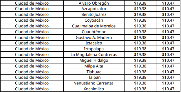 Precio máximo aplicable por kilogramo en la Ciudad de México (CDMX) será de 19.38 pesos.
