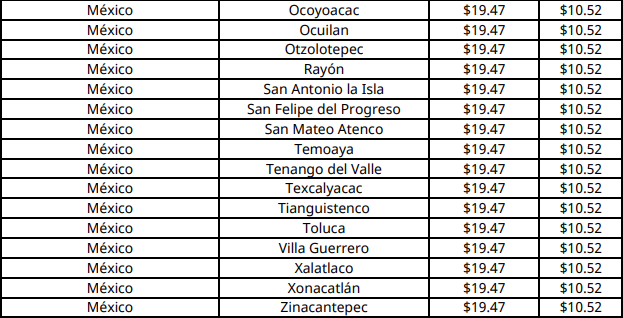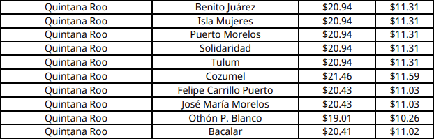 En Chetumal (Othón P. Blanco), capital de Quintana Roo, el precio máximo aplicable por kilogramo aumenta a 19.01 pesos.