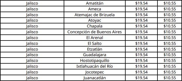 La CNE informó que el costo máximo del combustible será de 19.54 pesos en Guadalajara, la capital de Jalisco.