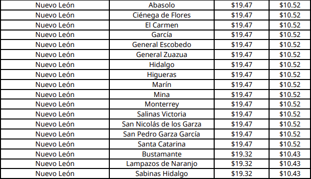 En el noreste del país, como en Monterrey, Nuevo León, el precio máximo aplicable del combustible, según la CNE, será de 19.47 pesos.