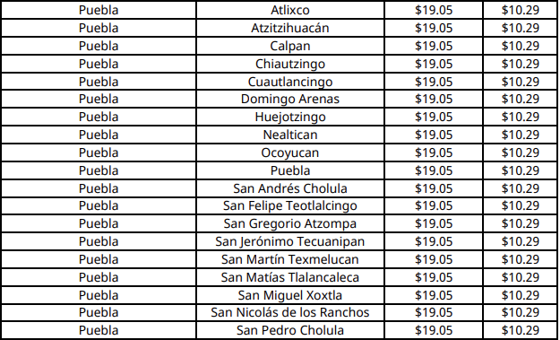 En Puebla capital el costo máximo por kilogramo será de 19.05 pesos.