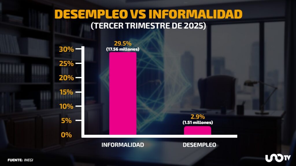 Según la Encuesta Nacional de Ocupación y Empleo (ENOE), la informalidad incrementó entre julio y septiembre del 2025, ya que hubo 17 millones 564 mil 129 personas en esa condición, a diferencia de las 16 millones 730 mil 677 personas registradas en el mismo periodo, pero del 2024.