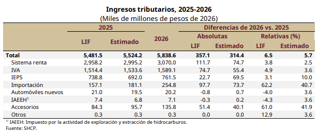 El incremento previsto en la recaudación forma parte del Paquete Económico 2026, presentado ante el Congreso de la Unión, que incluye la Ley de Ingresos, la Miscelánea Fiscal y el Presupuesto de Egresos de la Federación. Dicho paquete consolida una estrategia orientada a fortalecer los ingresos públicos sin crear nuevos impuestos generales, pero sí con ajustes en cuotas, retenciones y estímulos en varios rubros.