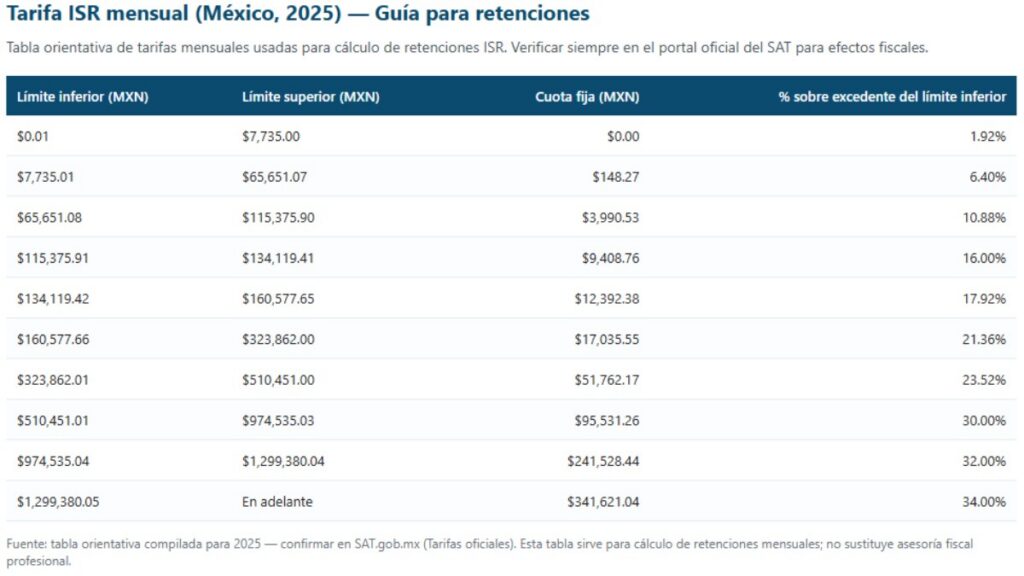 - Ubica ese resultado en el rango correspondiente dentro de esta tabla de ISR (está al final de esta nota).