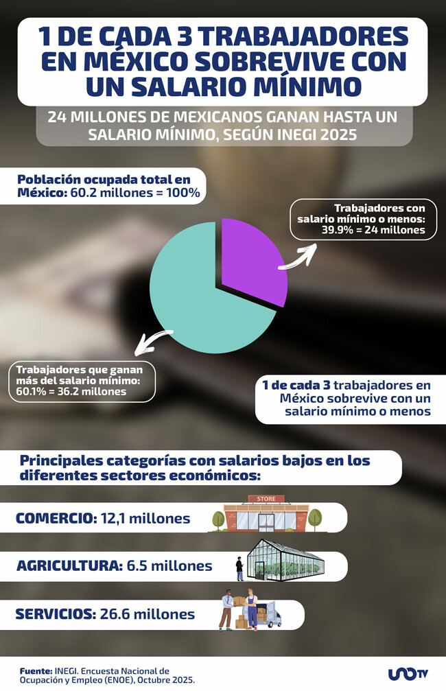 Esta es una proporción significativa, lo que indica que más de 1 de cada 3 trabajadores en México enfrenta este tipo de precariedad laboral.