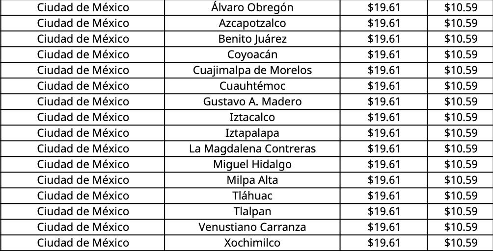 Precio máximo aplicable por kilogramo en la Ciudad de México (CDMX) será de 19.61 pesos.