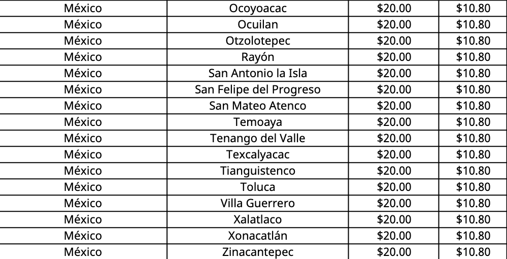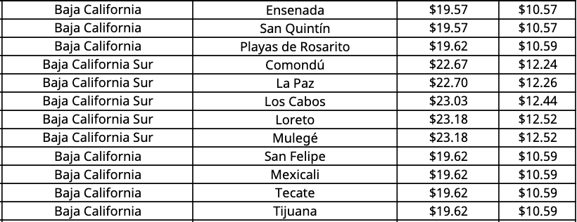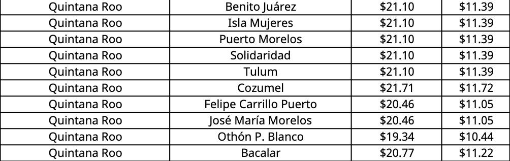 En Chetumal (Othón P. Blanco), capital de Quintana Roo, el precio máximo aplicable por kilogramo aumenta a 19.34 pesos.