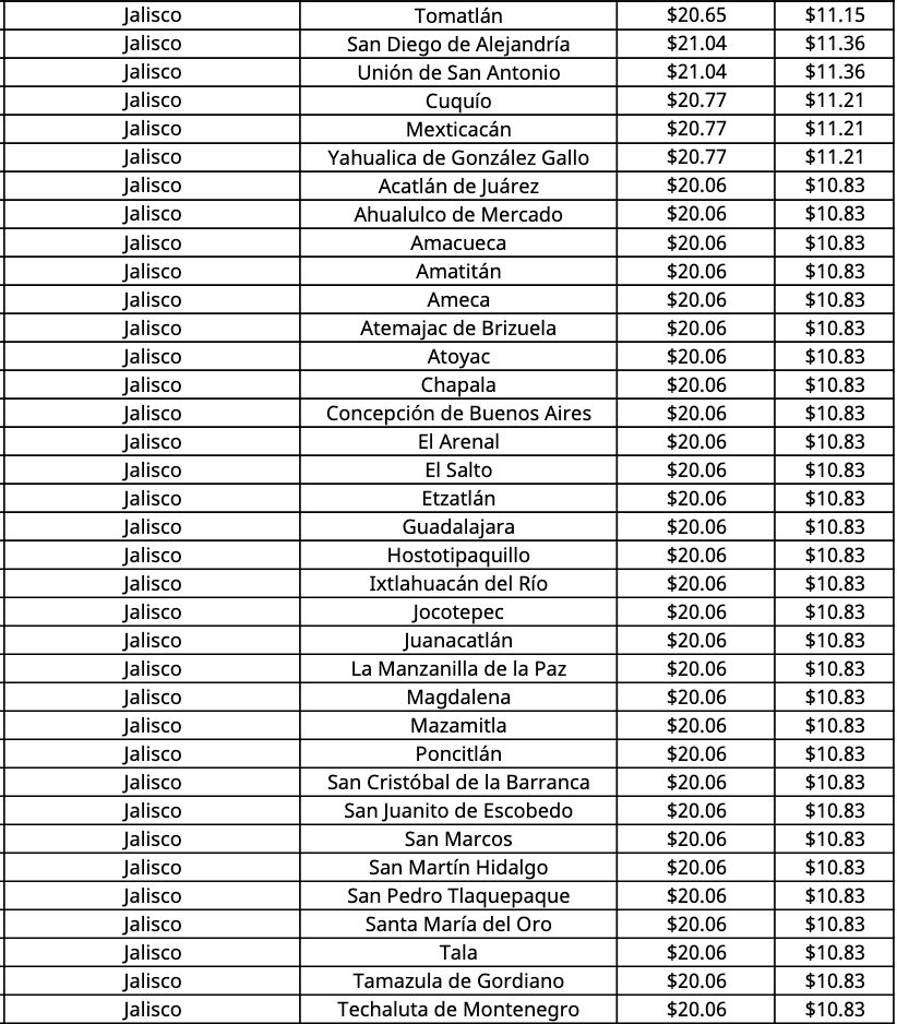 La CNE informó que el costo máximo del combustible será de 20.06 pesos en Guadalajara, la capital de Jalisco.