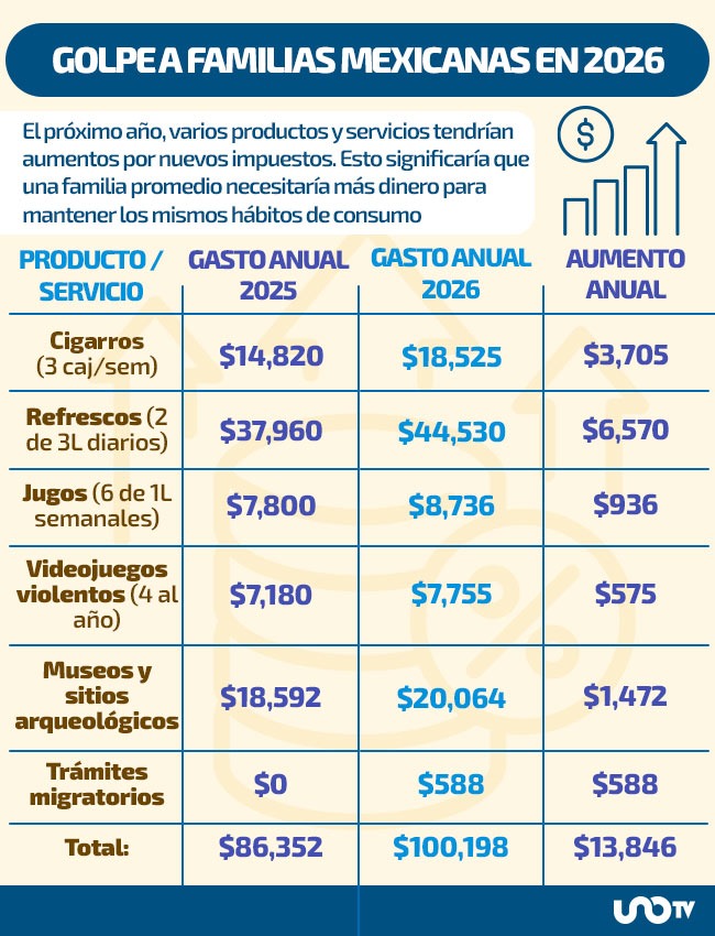 En total, el aumento anual en bebidas sería de $7 mil 506 pesos adicionales.