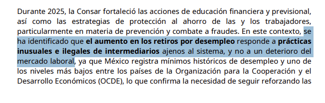 En su reciente informe, Consar indicó que el retiro de ahorro de las Afores no se debe al desempleo, “ya que México registra mínimos históricos de desempleo y uno de los niveles más bajos entre los países de la Organización para la Cooperación y el Desarrollo Económicos (OCDE).