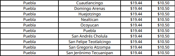 En Puebla capital el costo máximo por kilogramo será de 19.44 pesos.