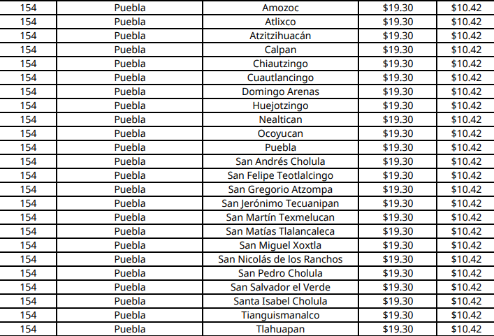 ¿Cuál es el precio en Puebla?