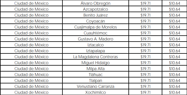 Al norte del país, en Mexicali, capital de Baja California, el costo máximo por kilogramo será de 19.71 pesos.