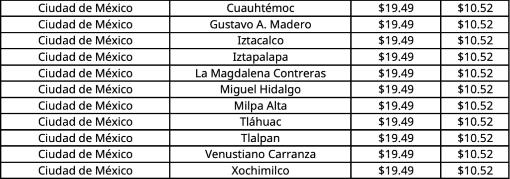 Precio máximo aplicable por kilogramo en la Ciudad de México (CDMX) será de 19.49 pesos.