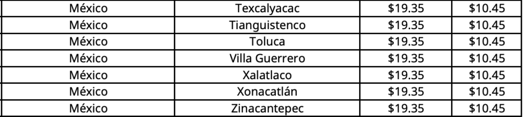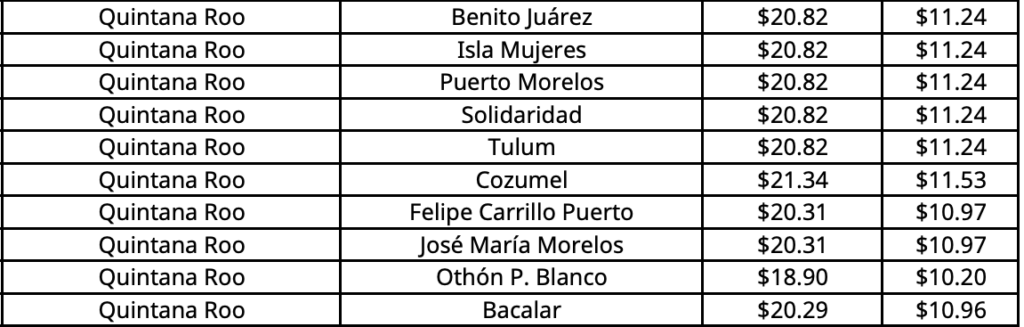 En Chetumal (Othón P. Blanco), capital de Quintana Roo, el precio máximo aplicable por kilogramo aumenta a 18.90 pesos.