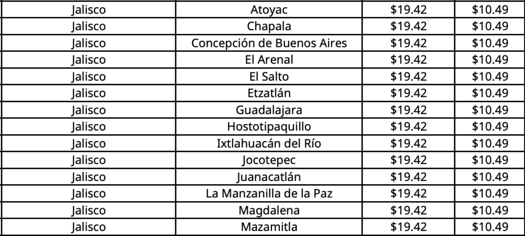 La CNE informó que el costo máximo del combustible será de 19.42 pesos en Guadalajara, la capital de Jalisco.