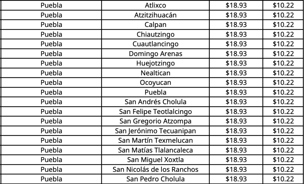 En Puebla capital el costo máximo por kilogramo será de 18.93 pesos.