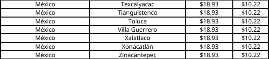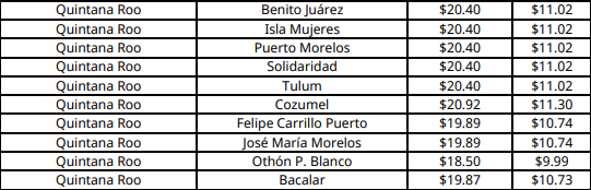 En Chetumal (Othón P. Blanco), capital de Quintana Roo, el precio máximo aplicable por kilogramo aumenta a 18.50 pesos.