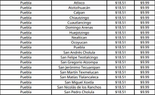En Puebla capital el costo máximo por kilogramo será de 18.51 pesos.