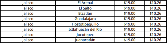 La CNE informó que el costo máximo del combustible será de 19.00 pesos en Guadalajara, la capital de Jalisco.