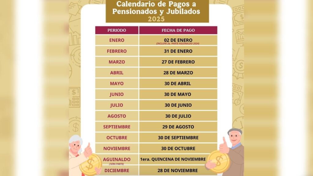 Por su parte, el IMSS informó que el pago correspondiente a noviembre se hará el lunes 3 de ese mes. Y el pago de diciembre se hará el lunes 1 del último mes del año 2025.