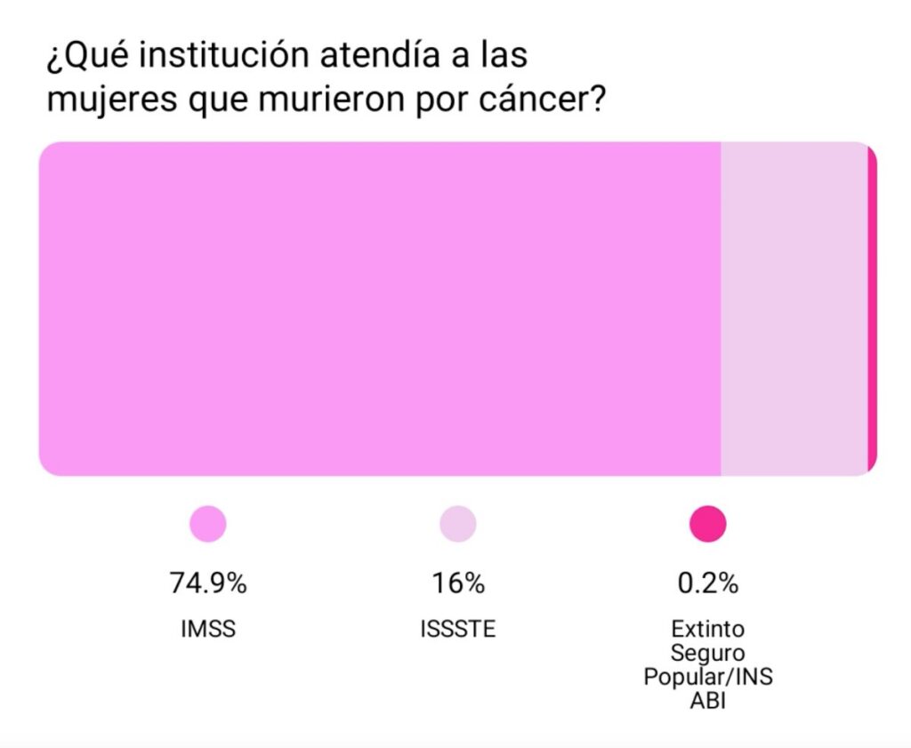 Por último, el INEGI compartió que de las mujeres de 20 años y más que fallecieron por cáncer de mama y tenían afiliación en alguna institución de salud: