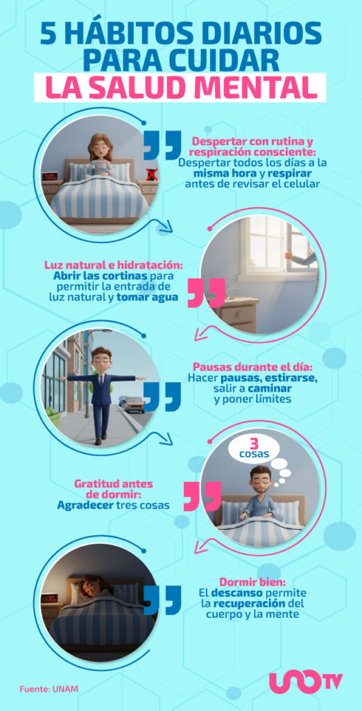 La guía de la UNAM da un mensaje claro: “La rutina no es aburrida si te ayuda a estar mejor”, reforzando la idea de que pequeños hábitos diarios pueden tener un impacto positivo en la salud mental.