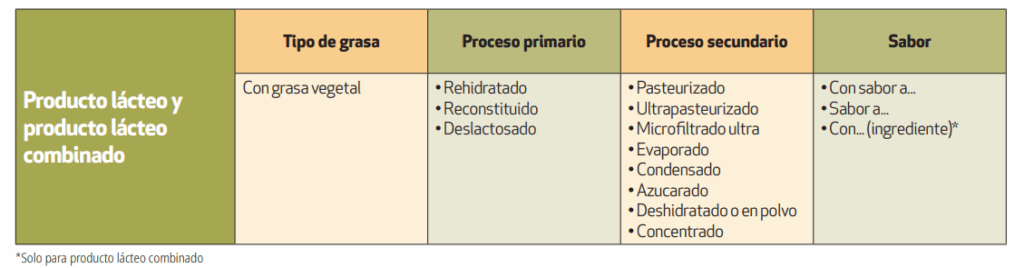 Por otro lado, se denomina producto lácteo y producto lácteo combinado a todo aquel insumo “obtenido mediante cualquier elaboración de la leche, que puede contener aditivos alimentarios y otros ingredientes funcionalmente necesarios para la elaboración”, según la Organización de las Naciones Unidas para la Alimentación y la Agricultura (FAO por sus siglas en inglés).
