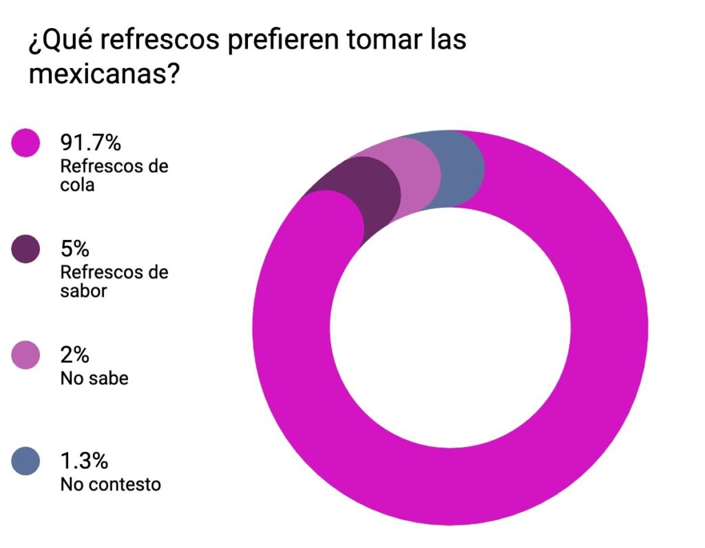 De acuerdo con un estudio (2016) de la encuestadora Gabinete de Comunicación Estratégica, casi la totalidad de los mexicanos prefieren tomar refresco de cola (95.4% masculino, 91.7% femenino).