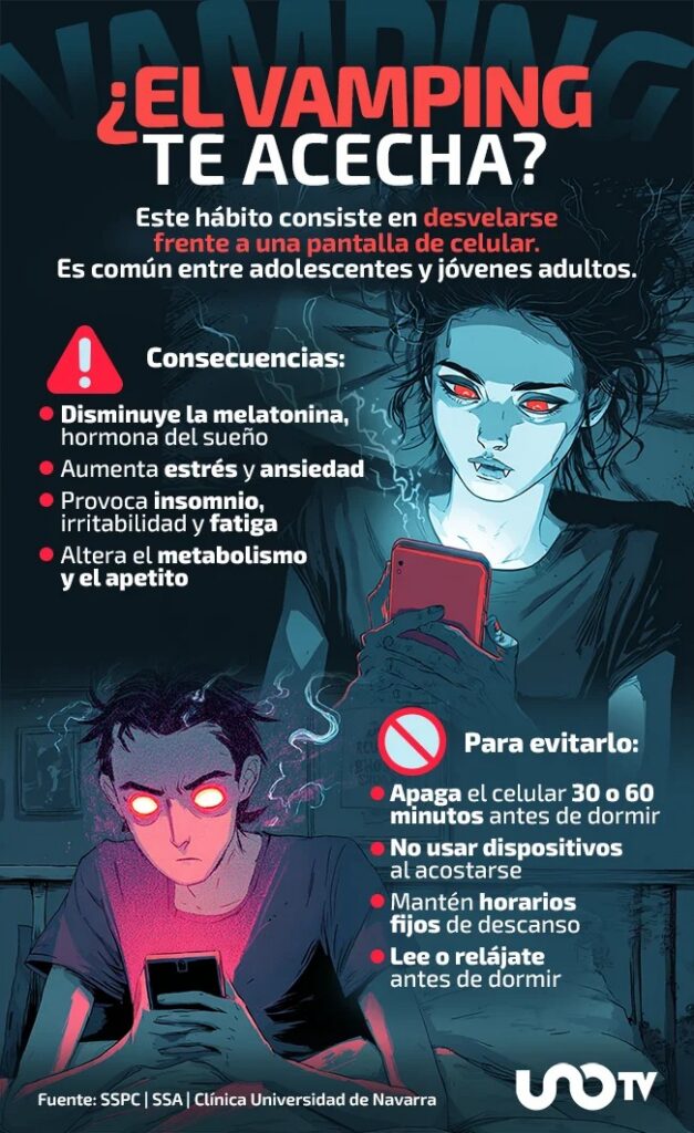 Te acuestas cansado, pero el sueño nunca llega. Miras el celular una vez más y, sin darte cuenta, ya pasaron horas. Si esta escena te resulta familiar, podrías estar siendo víctima del vamping, un hábito cada vez más común que afecta el descanso y la salud.