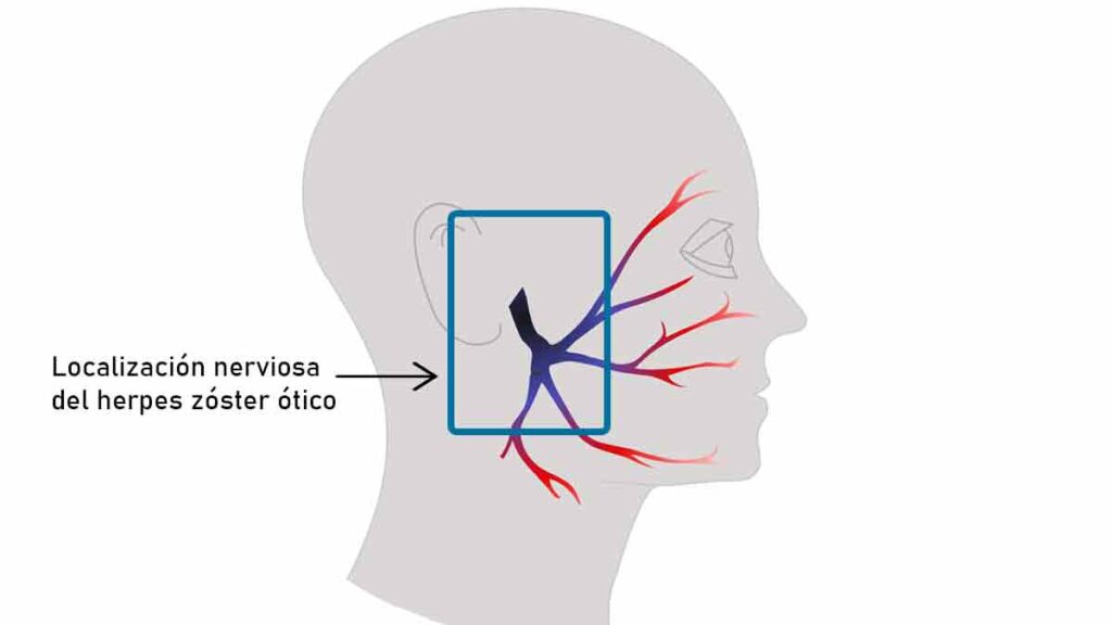 El herpes zóster ótico, conocido como síndrome de Ramsay, es aquel que afecta el nervio facial cercano a los oídos. Además, de causar la característica erupción dolorosa, también puede provocar parálisis facial y pérdida auditiva en el oído afectado.