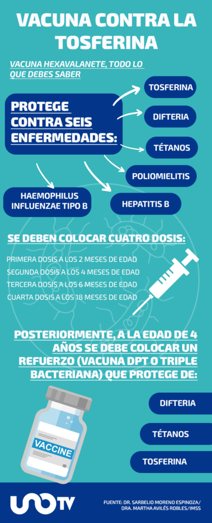 “La vacuna hexavalente se pone a los dos meses, cuatro meses, seis meses, 18 meses y cuatro años. Y se debe cumplir con todas las dosis para tener una protección garantizada”.