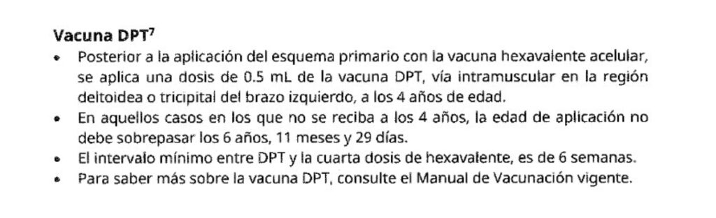 Para la vacuna DPT se considera una dosis para el 100% de las niñas y niños de 4 años, más una dosis de rezago para infantes de 5 y 6 años.
