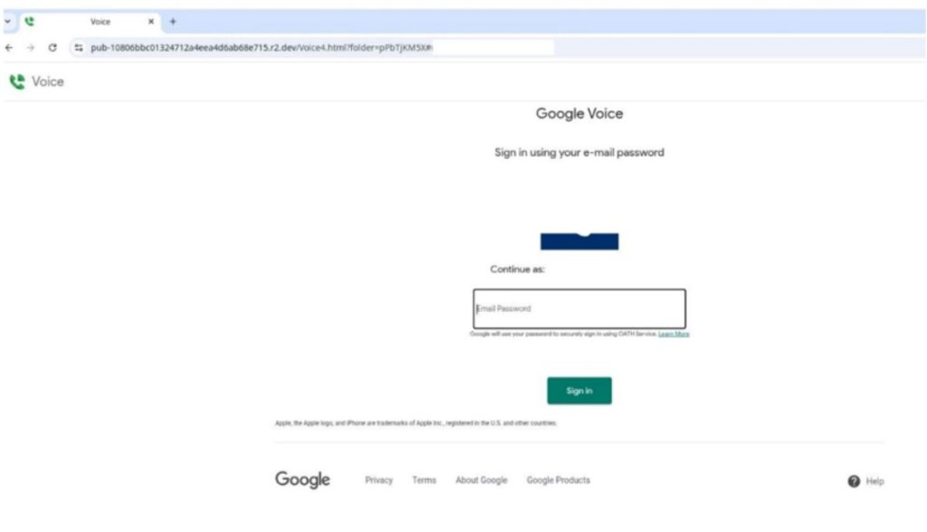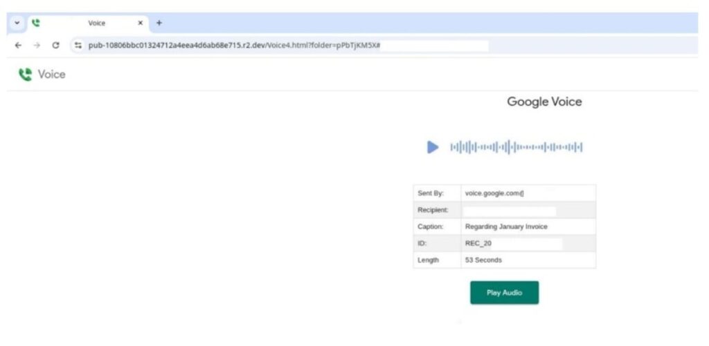 “Al hacer clic en el enlace, el usuario es redirigido a una página de phishing que imita una grabación de voz de Google Voice, aunque la supuesta pista de audio es en realidad una imagen estática”, alertó la compañía de ciberseguridad.
