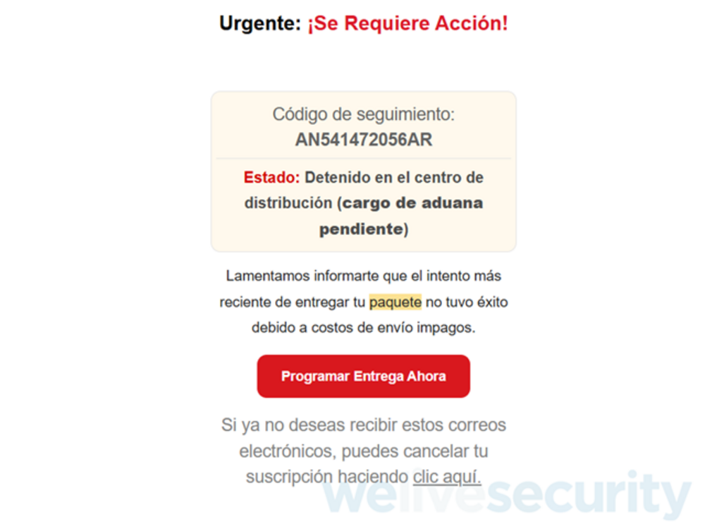 La estafa, alertada por ESET, aplica a Latinoamérica, en países como Argentina en donde suplantan a Correo Argentino, aunque los ciberatacantes también pueden hacerse pasar por: