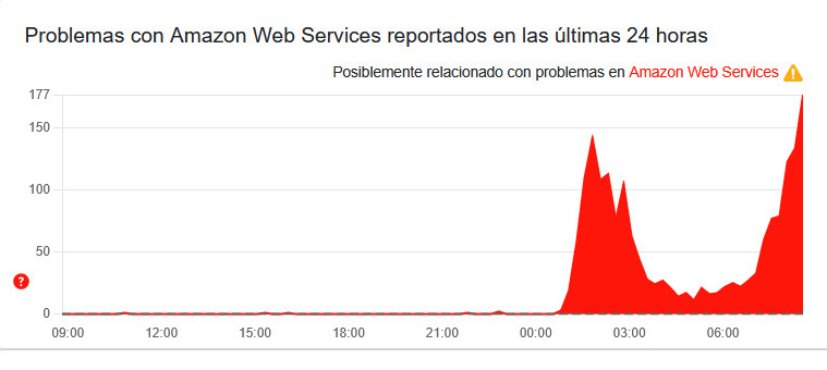 - “Amazon Web Services caído por completo”, escribió Pedro Ramírez