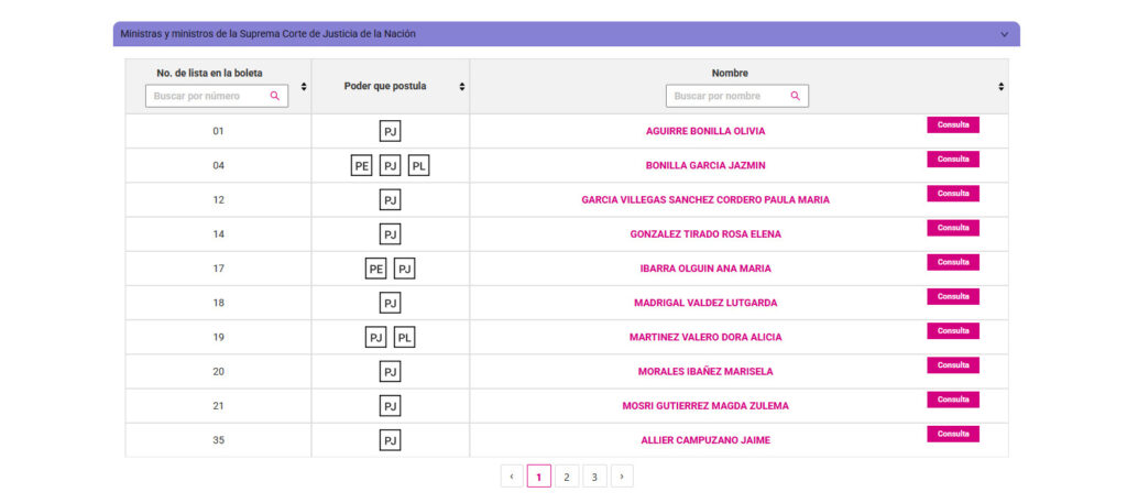 Dependiendo de tu sección electoral, el listado que despliegues contemplará las candidaturas a las cuales se les asignó un número de boleta, incluyendo aquellas que fueron canceladas.