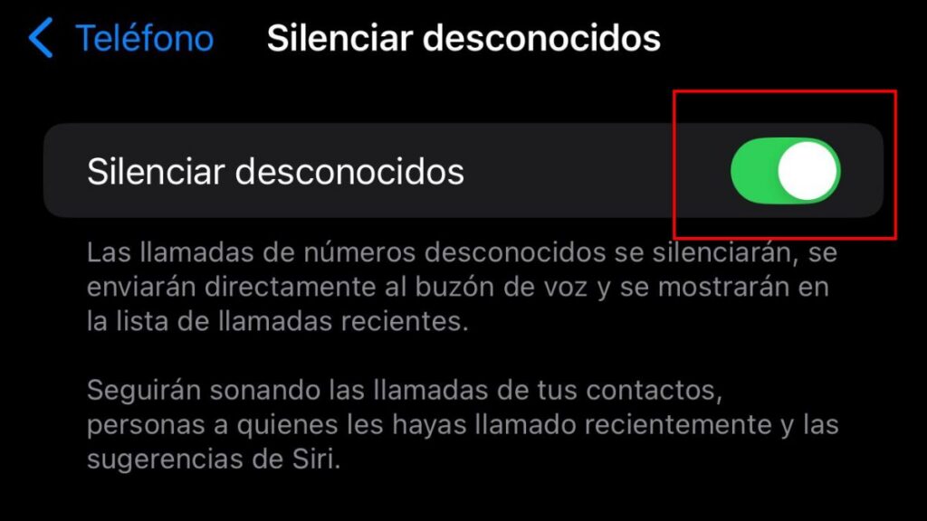 Las llamadas de números no guardados se enviarán directamente al buzón de voz. También aparecerán en la lista de “recientes”