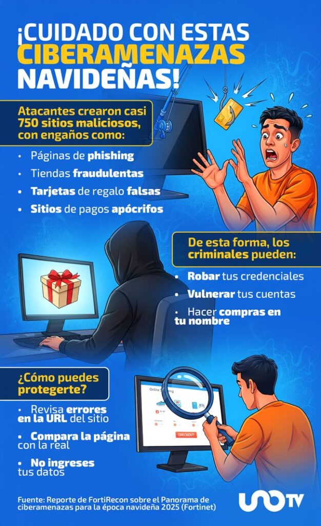 La época de Navidad de 2025 se verá marcada por un aumento en el volumen de páginas maliciosas, la vulneración de cuentas de los usuarios y la explotación de tiendas en línea para cometer fraudes, de acuerdo con el Reporte de FortiRecon sobre el Panorama de ciberamenazas para la época navideña 2025 de la empresa de ciberseguridad Fortinet.