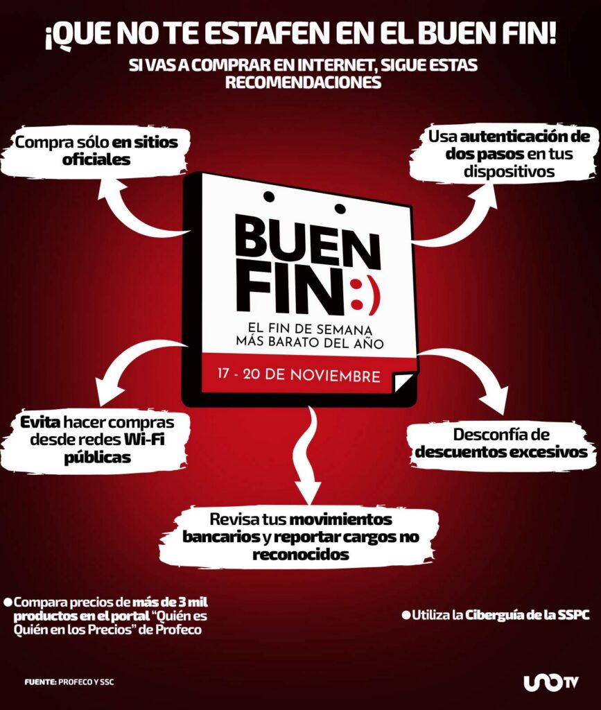 La Procuraduría Federal del Consumidor (Profeco) y la Secretaría de Seguridad Ciudadana (SSC) de la Ciudad de México también emitieron recomendaciones para prevenir las estafas durante El Buen Fin 2025 para que las personas realicen compras seguras en tiendas virtuales.