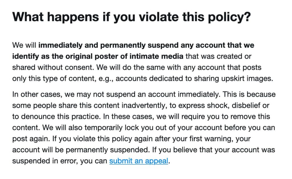 Las reglas de X establecen que se suspenderá de forma inmediata y permanente cualquier cuenta que “identifiquemos como la autora original de contenido íntimo creado o compartido sin consentimiento”.
